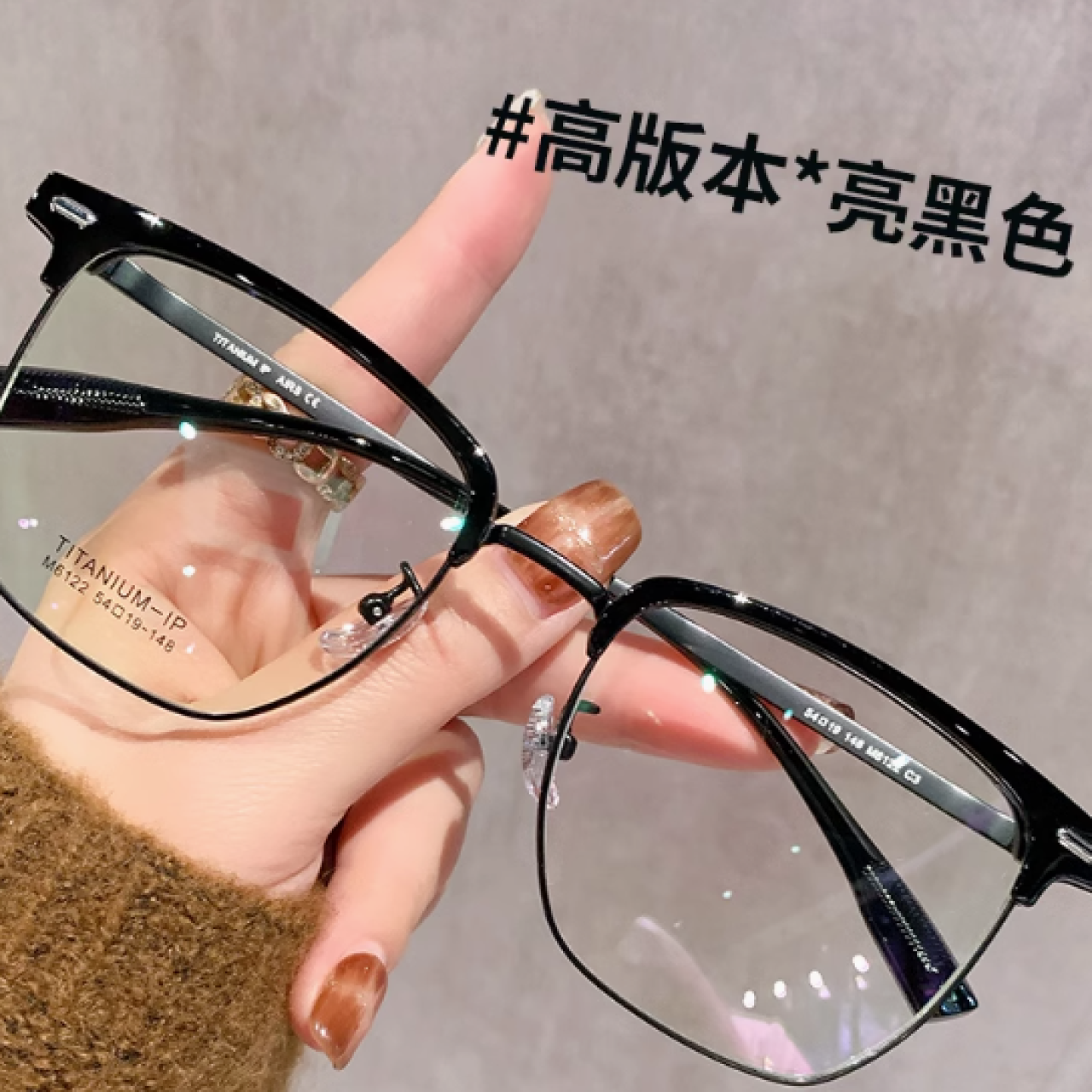 超轻钛架眉线黑半框眼镜