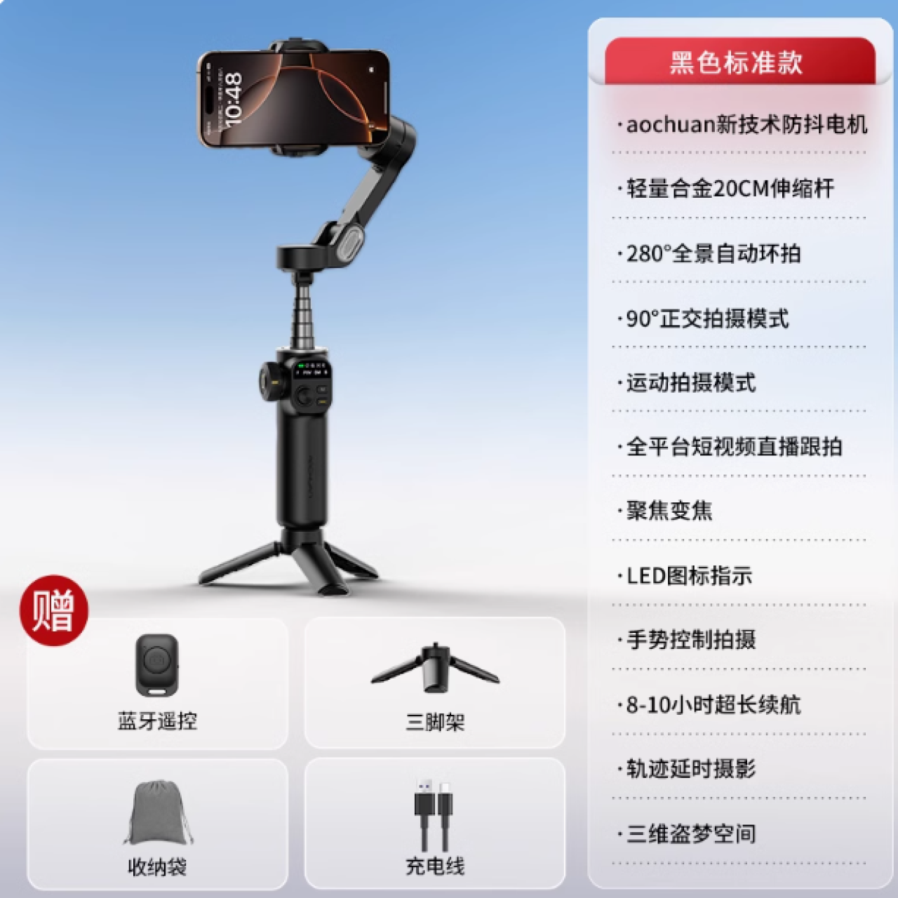浩瀚V3 手机云台稳定器三轴防抖手持拍摄视频vlog智能跟手机拍照辅助神器