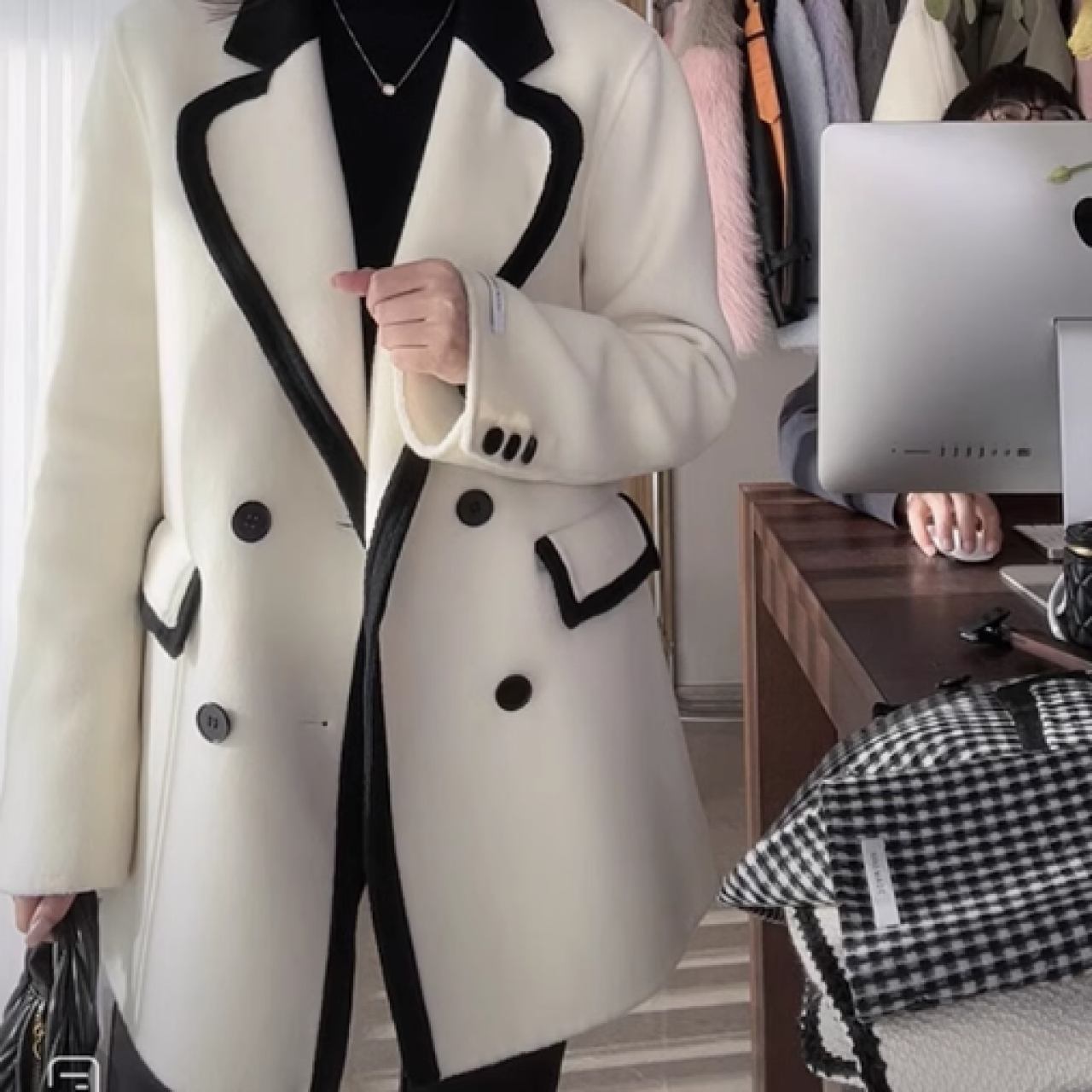 松本丧丧麂皮绒毛一体女秋冬夹棉棉服新款加厚韩系穿搭设计感外套
