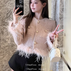 名媛撞色毛呢西装外套女2024秋冬新款欧货气质双排扣呢子大衣