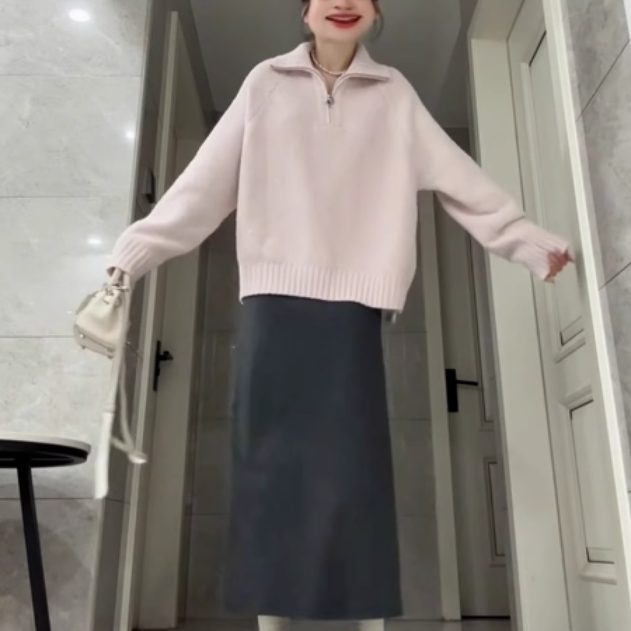 SMALLIU秋季青草绿显白慵懒风毛衣女新款休闲宽松大廓形上衣女装