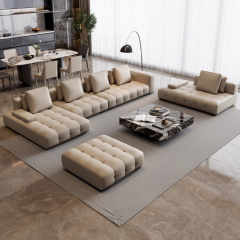 意式极简棉花糖黑色真皮直排沙发客厅现代简约网红奶油风复古沙发